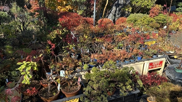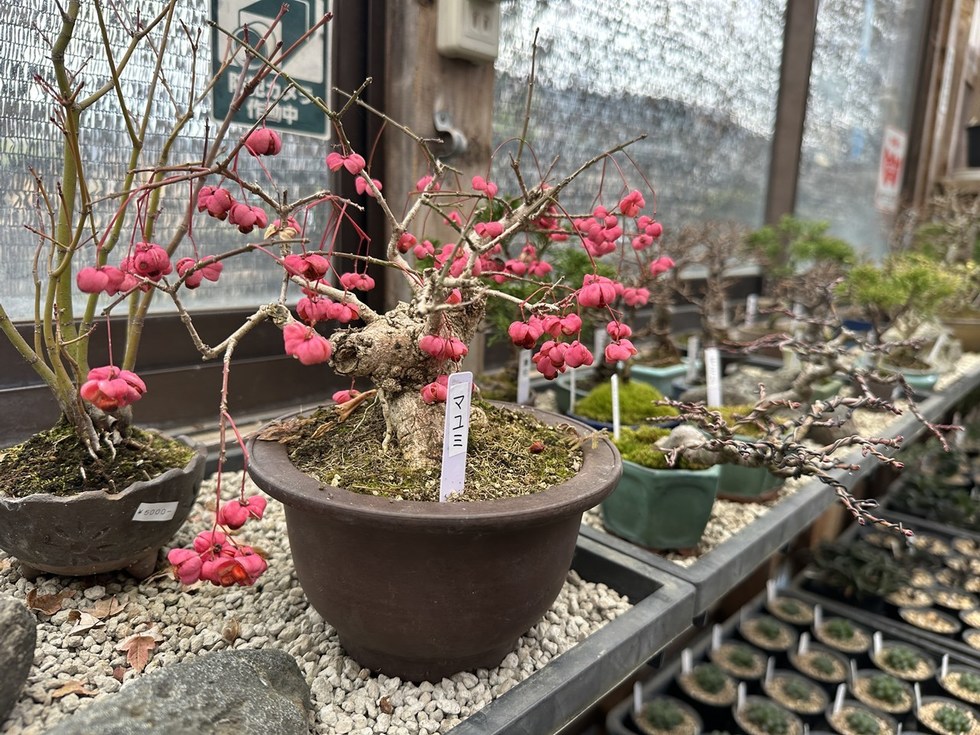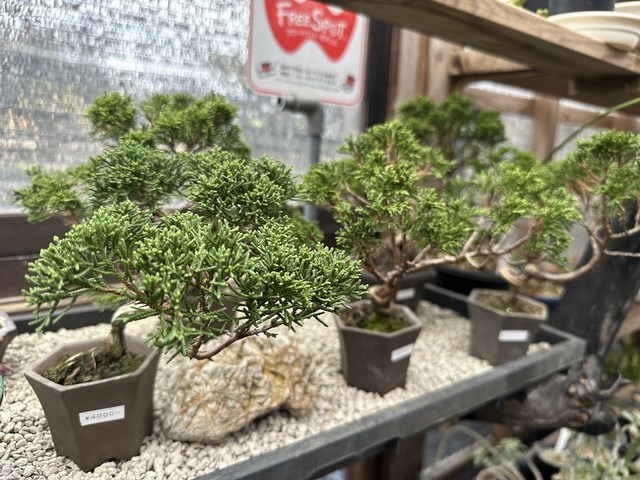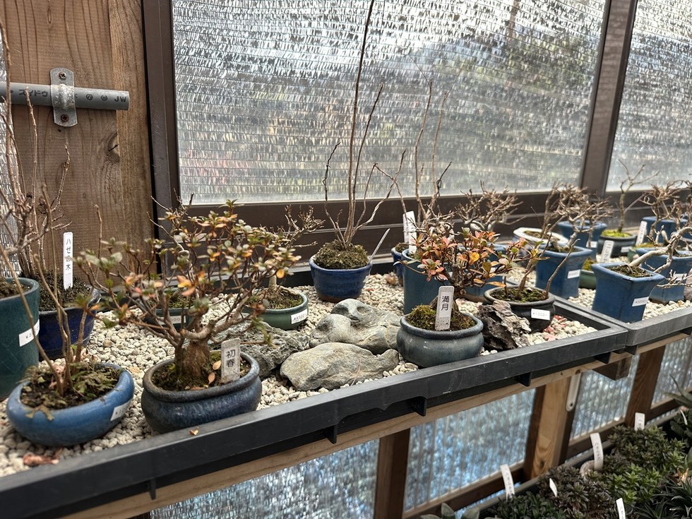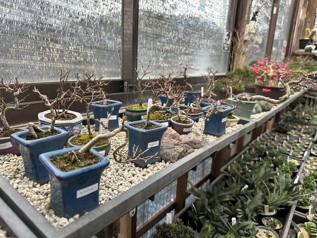 メダカ園たむらではメダカ以外に香丁木などの「ミニ盆栽」も多数展示販売しています
